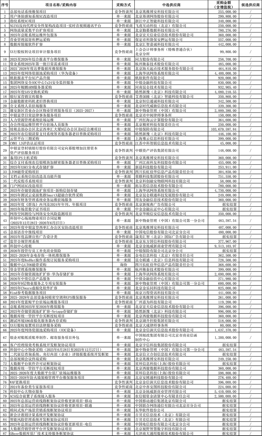 中银富登村镇银行股份有限公司采购项目结果公示(2025年4月-2025年12月)