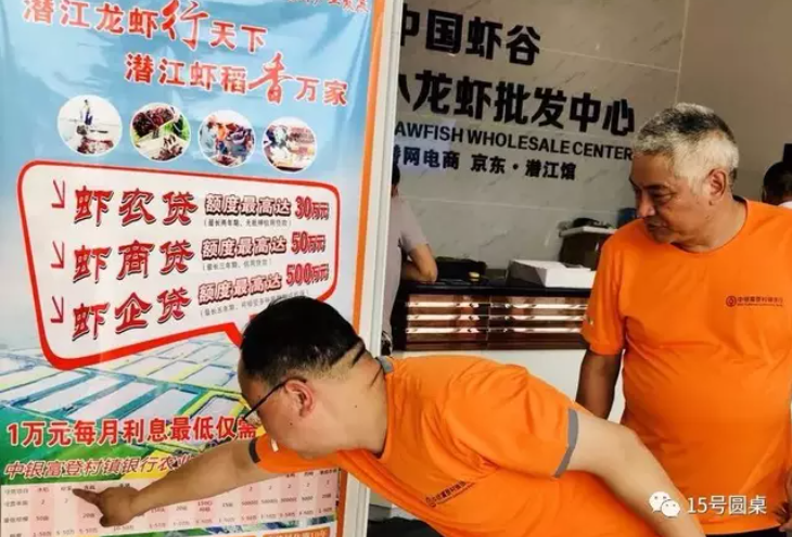 但2015年的这个月份,老陈正愁得头疼。那时,独自摸索过了小龙虾养殖技术关的老陈,28亩塘养小龙虾卖了57万元。正当他雄心勃勃想乘势扩大规模时,却因为没有贷款抵押物,卡在了30万元资金缺口上,整天黑着脸见人没好气。老陈说,一天他正在养虾场门口为钱发愁,一个陌生小伙子蹑进门来,很有礼貌地问他有没有贷款需求。