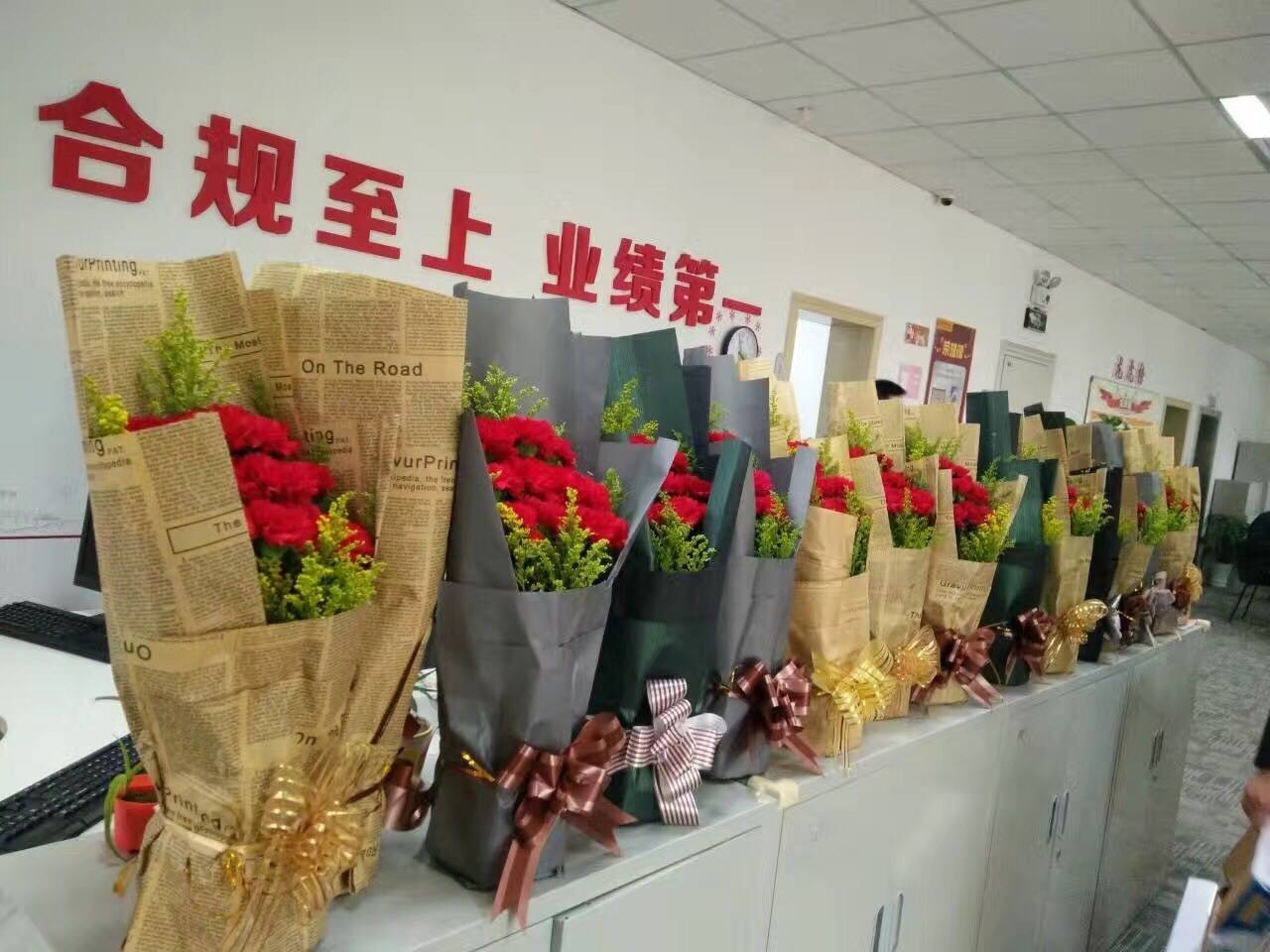 我们调研之际正值三八国际妇女节,银行特意为每一位女员工准备了鲜花,整个办公间温馨满满。
