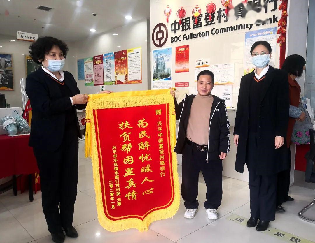近日,陕西省兴平市丰仪镇水道村口的村民,将一面“为民解忧暖人心 扶贫帮困显真情”的锦旗送到了兴平中银富登村镇银行营业厅,表达对帮扶他脱贫致富的感激之情。