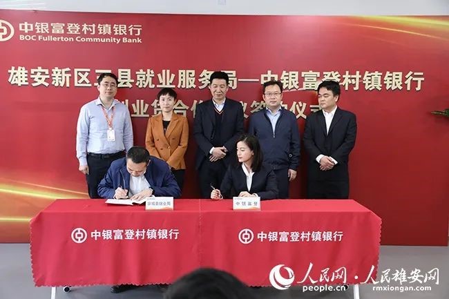 雄安新区三县就业服务局与中银富登村镇银行(以下简称“中银富登”)创业贷款合作协议签约仪式23日举行。