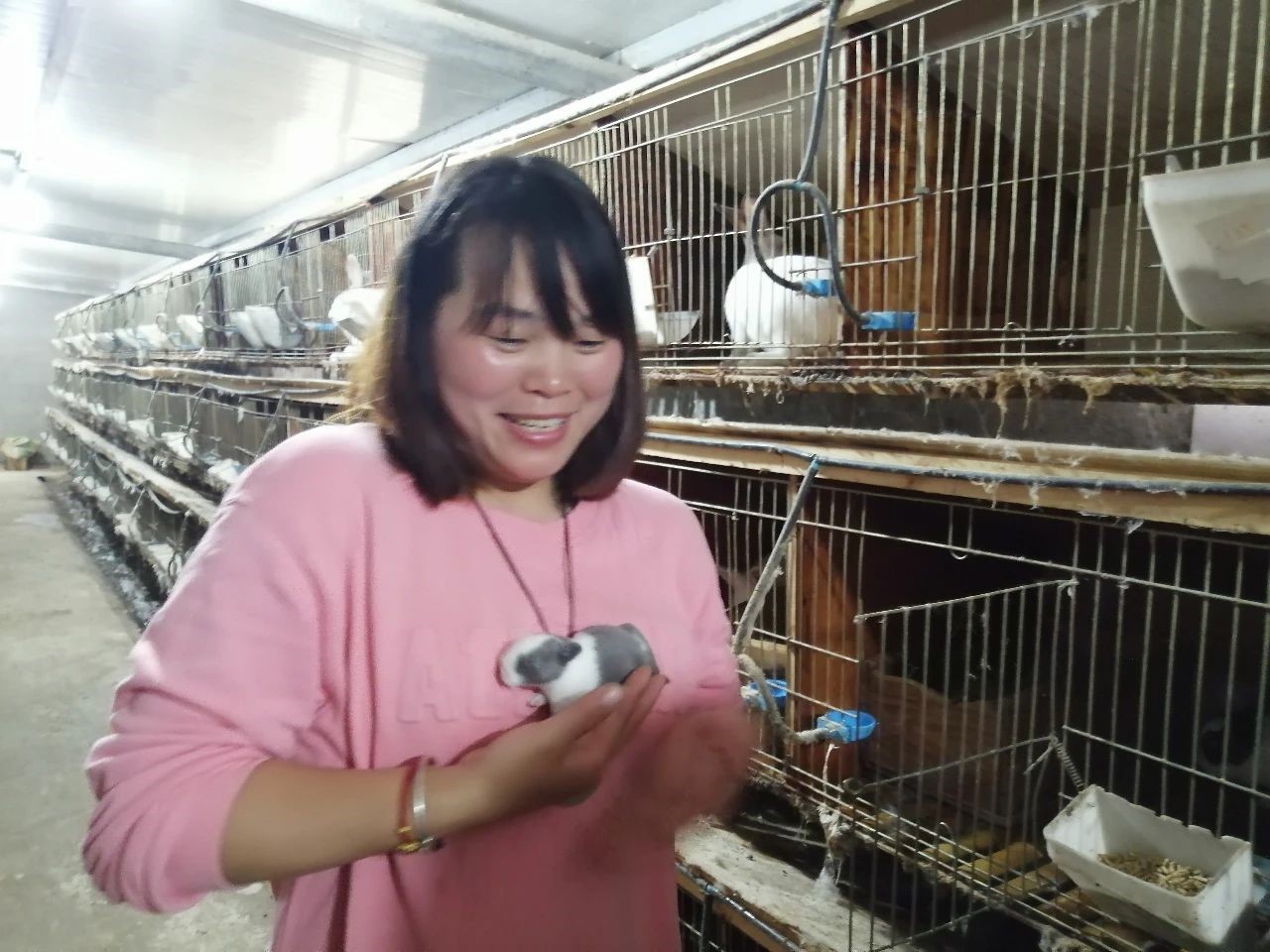 幸利15岁从重庆万州到温州打工,认识了青田小伙儿洪飞剑,随后结婚嫁到了洪飞剑的老家引坑村,养育了一个女儿和一对双胞胎儿子。面对比自己老家三峡库区还大的绵延不断的山,为了养活三个孩子,从小在万州走马镇老家看着父母和村民养兔的幸利,在九年前开始尝试养兔。她从1万元资金起步,靠着自有资金滚动发展。前两年养殖长毛兔,亏得一塌糊涂,后来改养肉兔,才慢慢有了起色。