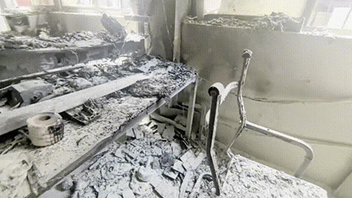 办公用纸、文件资料、图书等大量堆积存放,可燃物荷载大并与电器混置。