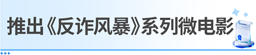 当前电信网络诈骗呈现技术升级、手法翻新的严峻态势,为进一步提升公众金融素养、守护群众财产安全,中国银行创新反诈宣教模式,以易懂、易记、易传播的方式,推出《反诈风暴》系列微电影,打造沉浸式反诈教育阵地。