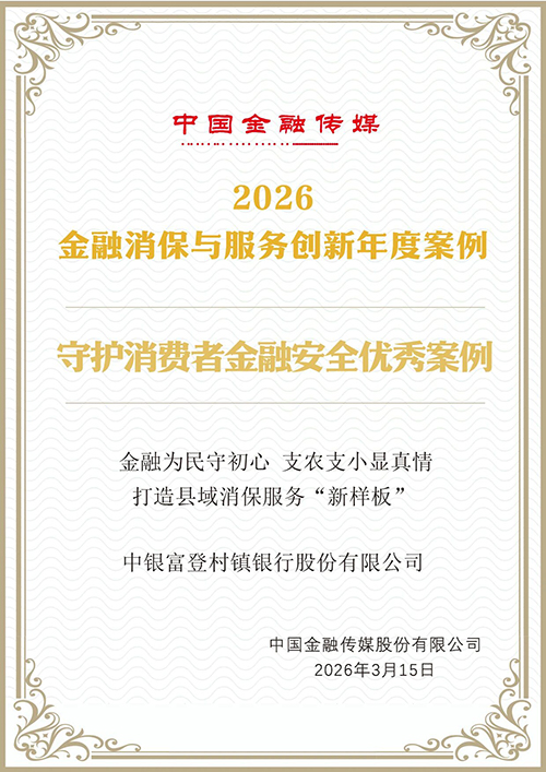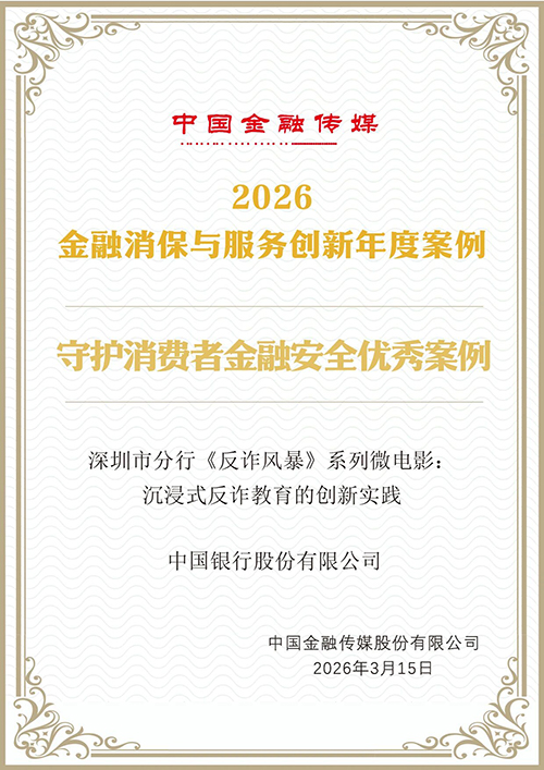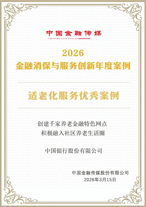 近日,由中国金融传媒主办的“2026金融消保与服务创新案例榜单”正式揭晓。中国银行及旗下综合经营公司中银保险、中银富登、中银三星人寿共5项案例成功入选。获奖案例涵盖反诈宣教、适老化服务、保险理赔、县域消保、消保生态建设等多个领域,充分彰显了中国银行在消费者权益保护与金融服务创新方面的突出成效。
